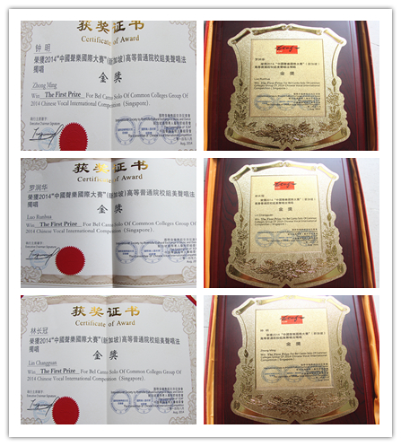 本网讯 暑假期间,2014新加坡国际华人艺术节(ICAF)在新加坡举行,期间同时举行“2014中国声乐国际大赛”。伟德bv国际体育艺术学院杨健生副教授应邀担任评委。伟德bv国际体育艺术学院学生在本次“中国声乐国际大赛”比赛中,凭借良好的心理素质和专业水准以精彩的表现获取佳绩。钟明、林长冠、罗润华获高等普通院校组美声唱法组金奖,郭禹、蔡羡莹获高等院校美声组银奖,黄颖莉获高等院校民族唱法组银奖。