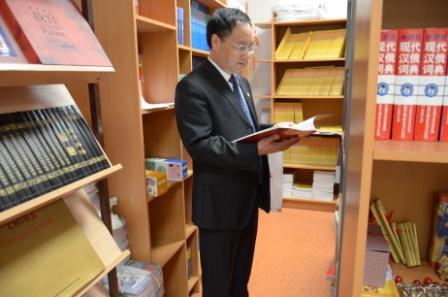 石佑启在孔子学院图书馆内阅读