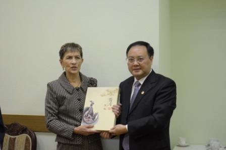 石佑启向莫斯科国立语言大学校长赠送画册