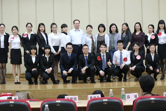 本网讯 5月8日下午,第十四届英语综合技能大赛(以下简称“英综”)决赛在北校区图书馆负一层报告厅举行。会师决赛的共有六支队伍。经过模拟新闻发布会及配音两个环节的激烈角逐后,分别决出了三项个人奖项和四项团体奖项。