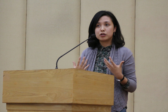 赛后,来自高级翻译学院的老师欧阳倩华作为评委代表对本场比赛进行了详细点评。对于选手们的表现,欧阳倩华连用了三个“brilliant”表达了肯定。她还表示了对选手们参与比赛、勇于表现自我的赞许,“Nothing competes the youth and passion(没有什么可以比得过青春和激情).”欧阳倩华对于配音环节的表现尤其欣赏,她表示没有想到所有的选手都是“表演天才”,选手们充满感情,深信自己就是剧中人物。她还特别提到了the Dos的三位女生在《中国合伙人》配音中对于“醉汉”的精准拿捏。
