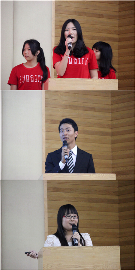 来自商英学院国际经济法专业的桂鹏用“坚持、自信、全面”来形容自己。初入校外语基础一般的他经过刻苦的学习成为校英文辩论队队长。“学习最重要的是懂得分配时间。”引领辩论队斩获各种奖项的他同时也是学院综合测评第一名和国家奖学金获得者。而刚于三月底通过联合国面试的翻译学院研究生陈琼,曾出访印尼,并在APEC峰会上向国家首脑提问。能有现今的成就,陈琼归功于“梦想的力量”。“努力、坚持和好习惯是取得成功的捷径。”她用一句话总结自己的成功。翻译学院的口译达人谭佳则用“天道酬勤”概括了她在学业上的领悟。“去尝试,去失败,毕业后我们还是一条好汉。”作为翻译学院演讲队队长和满天星公益团体领导,秦娜在学业上追求突破,勇敢地追寻自己的梦想。