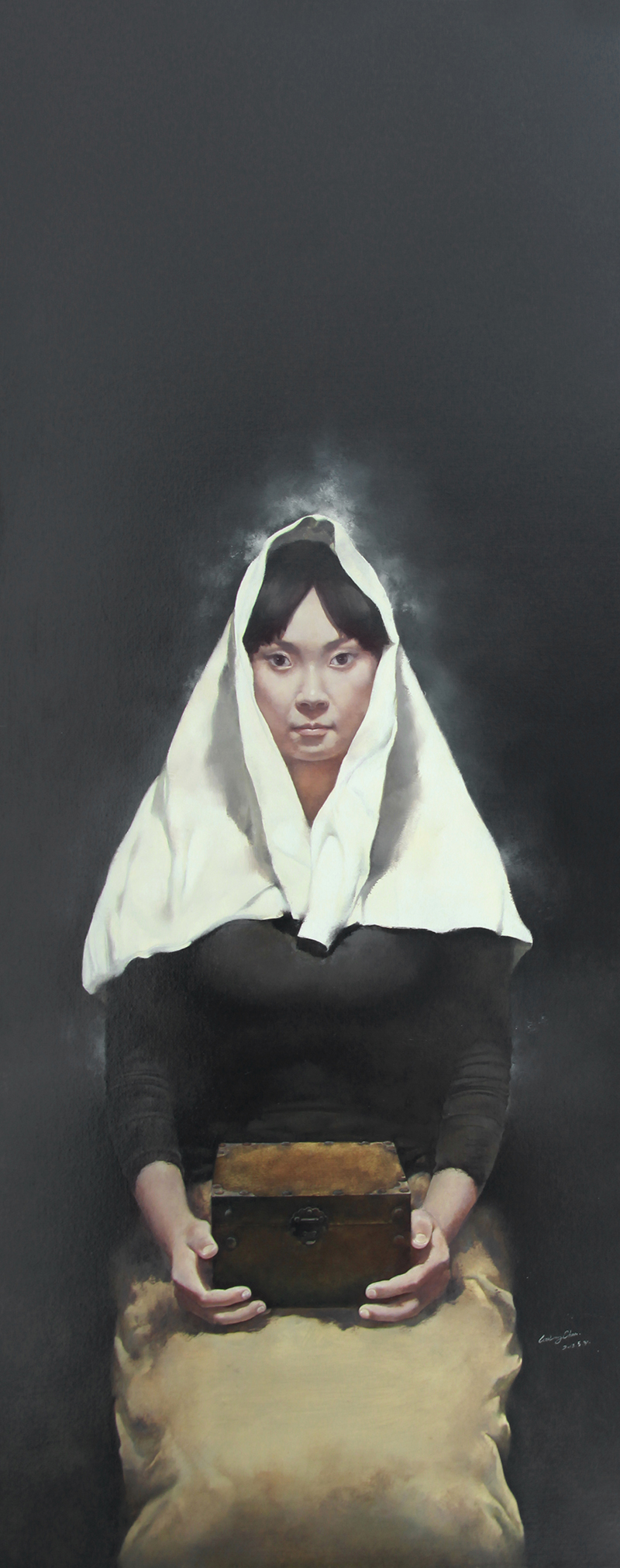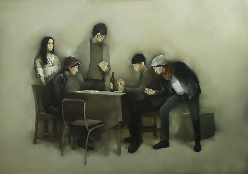 本网讯 2013年12月18日,“2013大艺博第二届大学生(广州)艺术博览会”在琶洲·南丰国际会展中心开幕。艺术学院艺术设计系2011级学生陈威龙创作的油画作品《修女》、《红领巾》、《行者》、和《玩扑克才是正经事》成功入选本届艺术博览会。艺博会公众开放的第一天,即12月19日,作品《行者》以8000元人民币售出,《玩扑克才是正经事》以13000元人民币售出,作品获得专家和观众的认可。