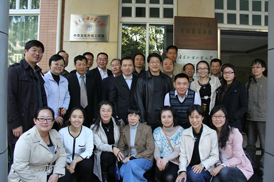 在随后举行的揭牌仪式暨科研项目交流会上,平洪向全院教师介绍了由仲伟合牵头引进的“外国传教士看中国”系列书目翻译项目。据他介绍,该系列书目均为珍贵的图书真迹照片,有着近百年的历史,是不可多得的文献资料,这亦是“中华文化外译工作室”承接的一重大项目。他动员全院教师以个人或合作的方式进行翻译。除此之外,平洪也鼓励全院教师积极参与当下正如火如荼进行的“2013中国当代优秀作品国际翻译大赛”,以期趁着2015年50年校庆暨我院10年院庆之良机,“中华文化外译工作室”能向翻译及社会各界交出更多更好的成果。