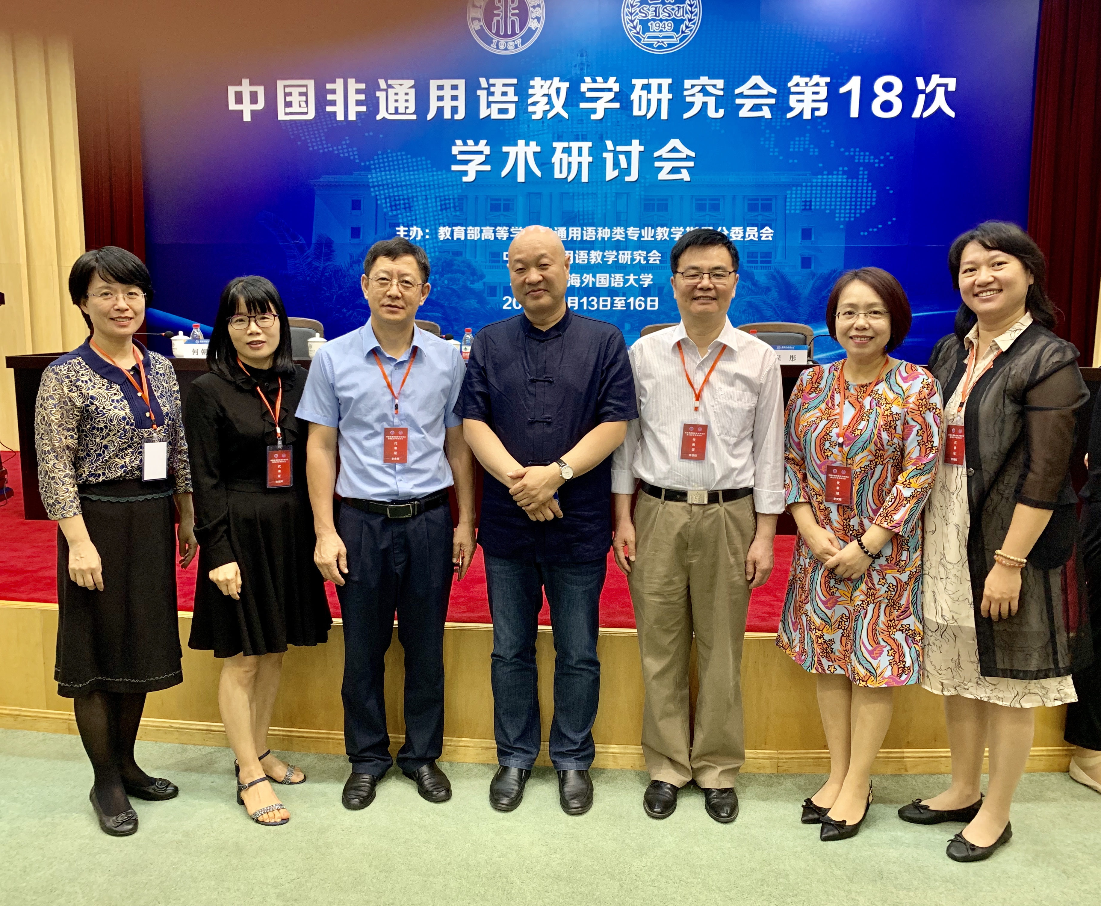 本网讯 6月13日至15日,中国非通用语教学研究会第18次学术研讨会在上海外国语大学虹口校区召开。研讨会以“‘双一流’背景下的外语非通用语学科建设”为主题,下设“语言、文学和翻译”、“课程思政与教学”、“国别与区域国别”等三个分论坛。本次研讨会还颁发了“第五届中国外语非通用语优秀科研成果奖”,谈笑、朱刚琴、茅银辉获一等奖,李婉珺获二等奖,尚雪娇、吴迪获三等奖。来自国内51所高校、语言服务机构和出版机构的120余名非通用语专业教师与专家学者参加会议。