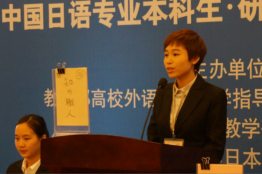在决赛中,李潇潇以关键词「知の職人」(智慧的匠人)演讲。她结合当今形势,提出了GDP世界第二的中国今后不仅要用经济征服世界,还要用文化赢得世界的尊重的观点,围绕关键词「知の職人」作出了严谨的论述。在东语学院副院长丁国旗教授的鼓励下、在教师杨晔和外教浅井治、冈泽成俊的悉心培训下,李潇潇独闯上海,经过几轮过关斩将,荣获比赛二等奖。