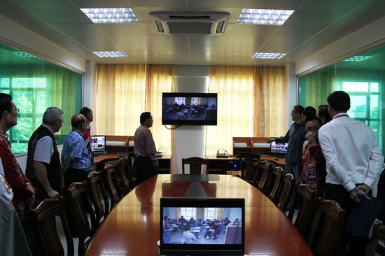 海外华教精英一行在座谈交流结束后,还参观了校园。他们主要参观了微格教室,观摩汉硕教学。