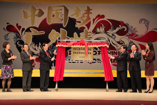 嘉宾为"中华人民共和国教育部首批来华留学示范基地"揭牌