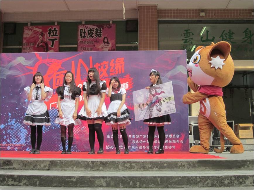 此时,在北校区同时举行的团体招新嘉年华也是盛况空前。Cosplay秀、高大憨厚的玩偶、神秘的解梦之旅、街舞表演、激情活力的band live……为了让新生们“看过来、走过来”,各大协会屡出奇招。无限动漫协会出动大型人扮熊公仔,吸引了许多女同学驻足与其合影。TGC协会也献上精彩的街舞表演,紧凑的舞步,婀娜的舞姿,舞台上的他们魅力无限,耀眼夺目。霏阳吉他协会为大家带来了band live表演,尽显青春活力。百花齐放,百家争鸣,除了歌舞表演,还有科幻协会,心理学社等团体的精彩呈现,满足同学们各种爱好需求的,如棋牌协会摆出的残局,令不少棋类爱好者驻足解答。