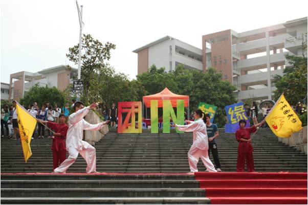 下午3:00,现场气氛持续升温,南校区学生团体的展示表演正式拉开帷幕。本次演出共分三轮,每一轮有18个团体上台进行简短而生动的展示,并有3个团体带来精彩的表演,吸引了大量观众前来观看。首先是由TGC带来一段活力四射的开场舞,迅速点燃全场!心理学社带来的舞蹈《小黄人扎扎跳》动作简单易学、风格清新可爱,展示者们脸上的笑容感染了在场观众;双节棍协会带来的双节棍表演融合了酷炫的街舞元素,炫目多彩,让台下的观众们大饱眼福;社会工作协会带来的手语舞蹈《梦想天空分外蓝》用手语呼唤着爱心。在广袤园武术协会的表演——《武魂》中,太极拳、武当拳、南拳等轮番上演,表演者动作豪放、气势十足,博得在场观众的阵阵欢呼和掌声。最后出场的为绿精灵舞蹈协会,舞者们动感十足,用曼妙的舞姿、优美的身影展示出了体育舞蹈的独特之美。