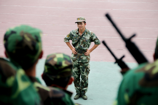 若问:新学期里,校园里最吸引人眼球的是什么?答案当属浩浩荡荡的“绿色部队”——那是2013级新生的军训队伍。由于一身军绿色的迷彩着装,师兄师姐亲切地称呼他们为“小绿人”。初来乍到,“小绿人”们不仅是校园里最独特的风景线,更成为了训练场上英姿飒爽的好少年。今天,仅随记者镜头,一睹“小绿人”们的军训风采!