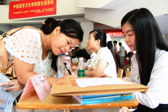 新生们初来乍到,由于太激动太兴奋,也导致了一些闹剧。经贸学院一位新生昨日早早就到达宿舍,今天注册时却突然发现资料袋空空如也,她的录取通知书等注册要用的资料竟不翼而飞!接待处的工作人员一边安抚她的心情,一边派人寻找,最终她的班导在二楼的宿管处找到了她的录取通知书。原来这位粗心的“小朋友”不知什么时候把录取通知书掉在了走廊上,被同学捡到,送到了宿管手中,最终“虚惊一场”。