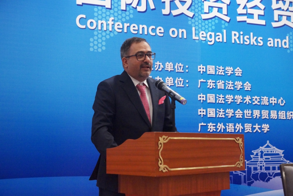 本网讯 6月20日,第六届“国际投资经贸法律风险与对策研讨会”在北校区举行。此次会议由中国法学会主办,广东省法学会、中国法学学术交流中心、中国法学会世界贸易组织法研究会和伟德bv国际体育共同承办。本次研讨会以 “深化‘一带一路’法治合作,共建开放型世界经济”为主题,来自五大洲36个国家和地区的200多位法学法律界和工商界代表出席了会议。中国法学会副会长兼秘书长张鸣起、印度律师协会候任会长普利桑特•库马、中国法学会世界贸易组织法研究会会长林中梁、广东省法学会常务副会长陈文敏、外交部条约法律司参赞田立晓、司法部国际合作局副局长尹雪梅等出席开幕式。开幕式由伟德bv国际体育副校长王廷惠主持。