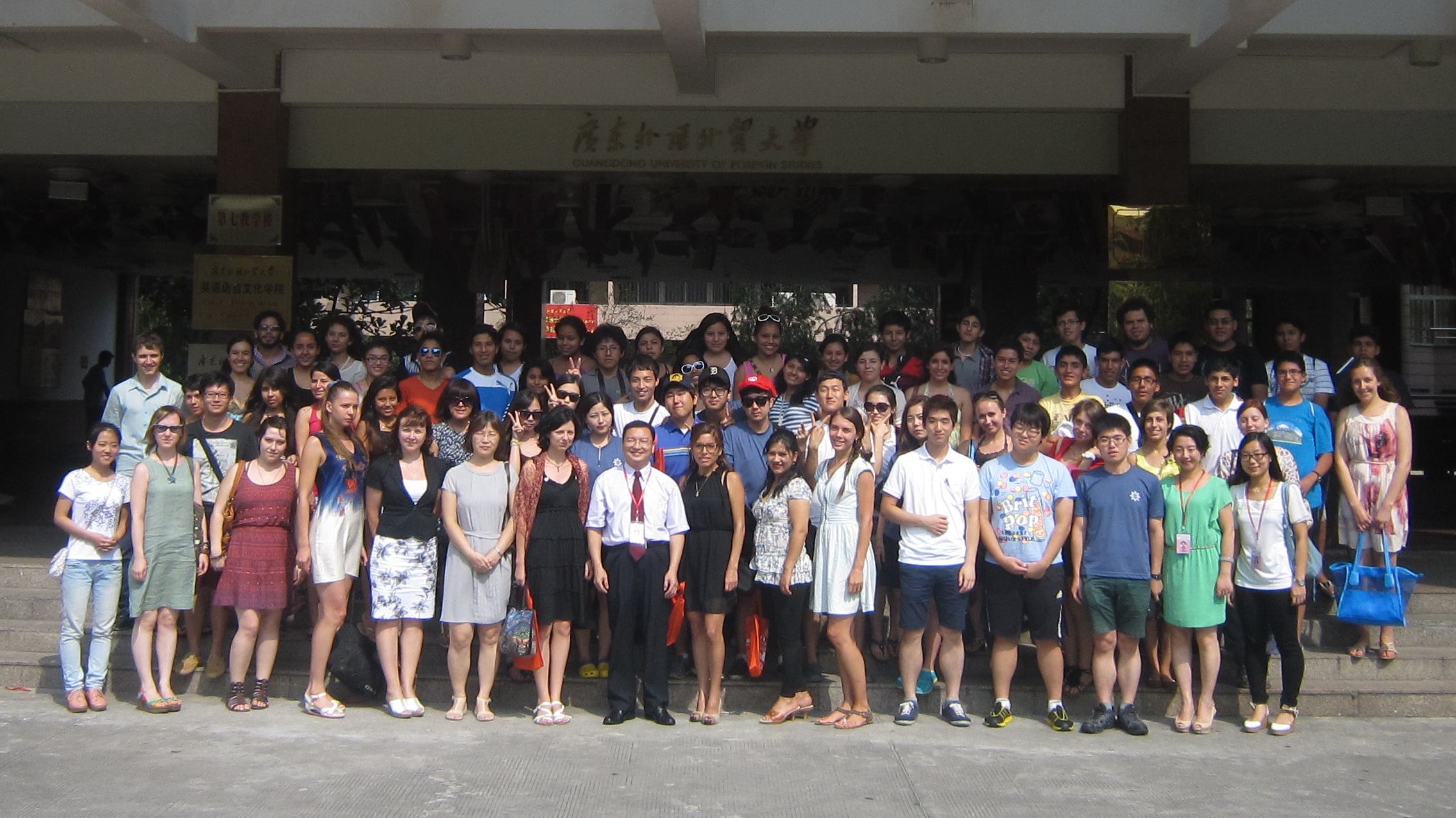 本网讯 7月13日下午,伟德bv国际体育2013夏季外国研修活动开营仪式在七教107室举行,参加开营仪式的有来自秘鲁圣玛利亚天主教大学、俄罗斯乌拉尔联邦大学以及韩国釜山外国语大学等共66名师生,留学生院院长梁学宏、副院长王凤兰和办公室主任吴艳也出席了本次开营仪式。据悉,本次开营仪式实行了汉语、西班牙语、俄语和韩语四语种交替传译,是有史以来翻译语种最多的开营活动。