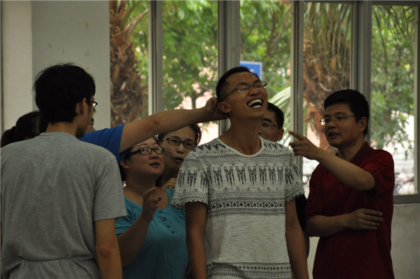 本网讯 7月13日下午,由人事处、教师发展中心主办的2013年新进教职工素质拓展培训在大学城举行。培训分室内、室外两个部分,分别在南校区教室楼D栋和大学生素质拓展营(素拓)营地进行。在培训师的带领下,新进教职工分6个小组进行了握手游戏、团队建设、驿站传书以及极限时速等游戏。所有新进教职工们兴致高昂,积极参与,乐在其中。