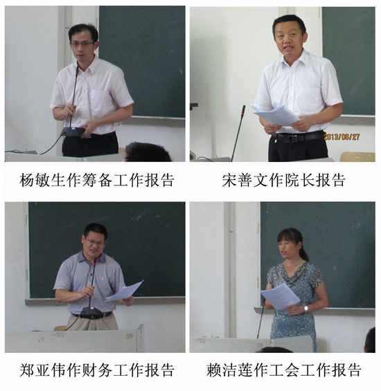 杨敏生代表首届“双代会”筹备工作小组作了会议筹备工作报告。他说,二级教代会制度是学院管理体制的重要组成部分,是推进依法治院、民主治院,保障教职工行使民主权利、参与民主管理和民主监督的基本形式。筹备工作小组经过了一个学期的紧张筹备,先后开展了首届教代会常设工作小组候选人推荐、提案征集、《教代会常设工作小组工作规程(征求意见稿)》起草等工作,得到了学校工会、教代会常委会同意,圆满完成了各项筹备工作。
