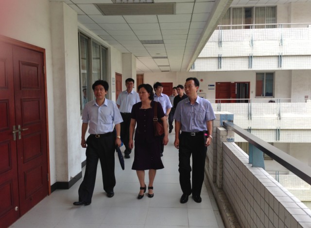 交流会后,宾主一行步行至实验楼法学实践教学中心进行现场考察,参观并了解了模拟法庭、法律援助中心、物证技术实验室等。