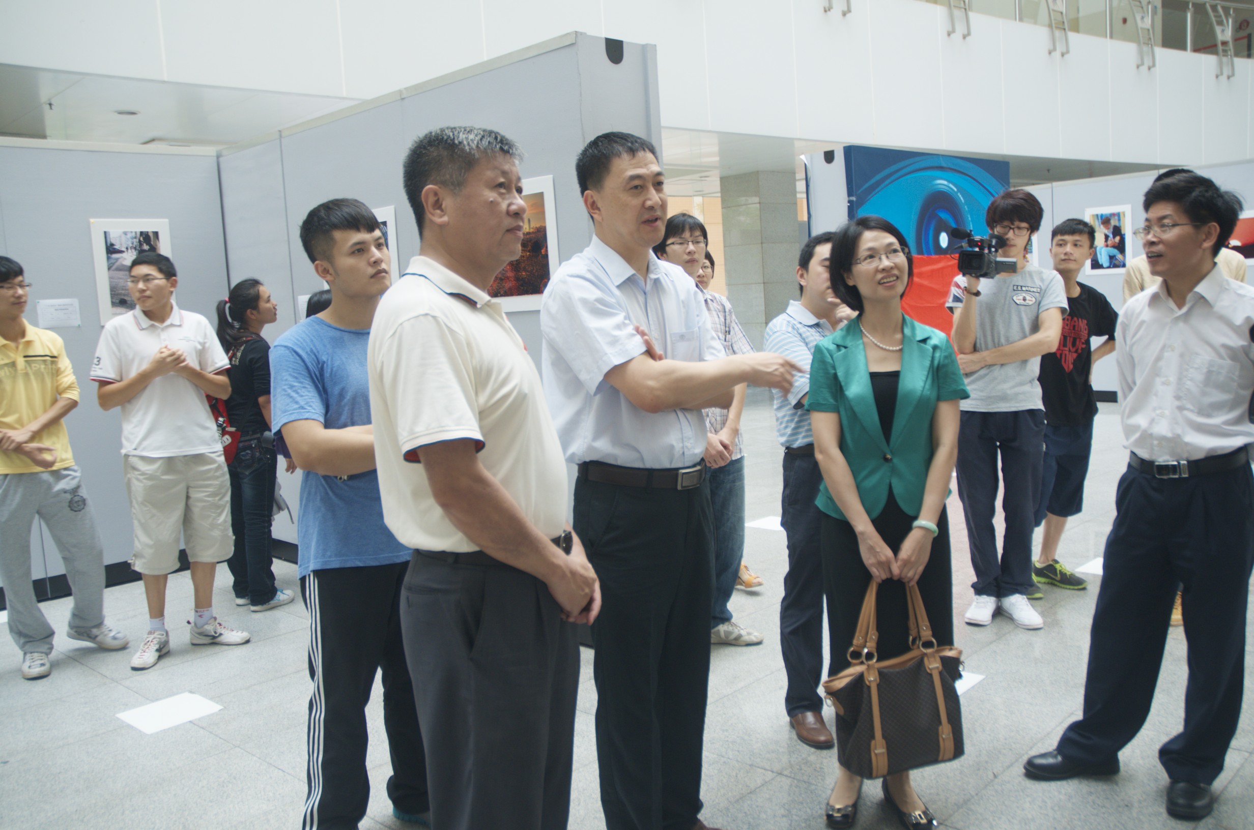 本网讯 为配合学校教育国际化战略,党委宣传部、学生工作处、国际合作与交流处和校工会联合举办了“广外人看世界”摄影比赛。此次摄影比赛的全部获奖作品放在南校艺术楼一楼大厅展出。6月23日,大学开放日当天,校党委书记隋广军与校工会常务副主席刘祎为本次摄影展揭幕。