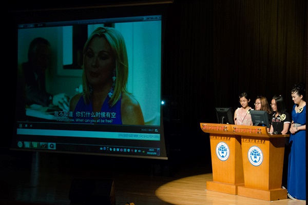 首先登场的是1212班A组的《BecomingJane》,虽然是第一个登台,但4位女生毫不怯场。Jane母亲一角的配音员语音沉稳,语气逼人,将母亲的逼迫和命令表现得淋漓尽致。同时Jane的配音员适当地把握了语调的轻重缓急,完美展现了Jane的反抗和执着的个性。两种“力量”的碰撞,时刻牵动观众的心。随后出场的是1202班的《Sex and the City》,四名配音员用各具特色的美音表现电影里“四个年过五十的女人”的不同性格特点。Samantha的配音员陈希沉着冷静,气场强大,同时将Samantha的外向性格表现到位,最终凭借精湛的美音斩获最佳女配音奖项。