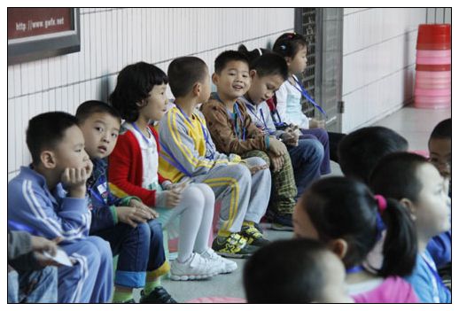 等待进场面试的小朋友们