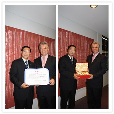 昆士兰科技大学副校长谢福德向陈建平赠送纪念品