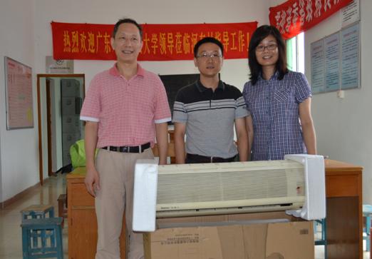 座谈会最后,马庆华、车小真向连勇转达了校党委领导对驻村干部的关心之情,并代表学校送去空调机一台以改善其工作生活条件。