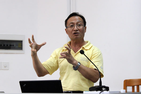 随后,刘建达则凭借自己任教CECL的多年经验分享了他对本次改革的看法。他说:“CECL一经推出曾经一枝独秀于全国外语领域,现在面对社会经济的发展,不进则退,CECL要不仅独秀于广外,也要满园花开于世界”。他向教学团队提出了四点建议:适当扩大CECL编辑团队;CECL教学和科研要跟上;扩大CECL的影响力;鼓励学生参加创新性学习和参与科研工作。