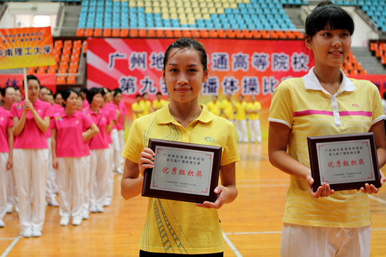 本网讯 6月16日上午,广州地区普通高等院校第九套广播体操比赛在暨南大学举行,伟德bv国际体育由体育部教师和健美操队学生共36人组成的代表队在训练时间仅有短短8天的情况下取得了二等奖的好成绩以及优秀组织奖。