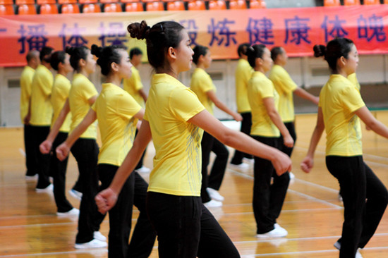 据了解,老师同学们每天除正常教学、学习任务外还保证至少两个小时的集体训练。训练期间恰巧是伟德bv国际体育排球比赛时间,许多体育老师在训练广播操之后又投入到排球比赛当中,不仅疲劳,而且还承受着伤病复发的痛苦。比赛当天也是英语四六级考试,为了参加比赛,甚至有同学放弃了考试机会。据了解,队员们从不会动作,到动作不协调,再到每个动作细细的钻研,相互之间一直批评指正。今日赛场上,实力果见分晓。
