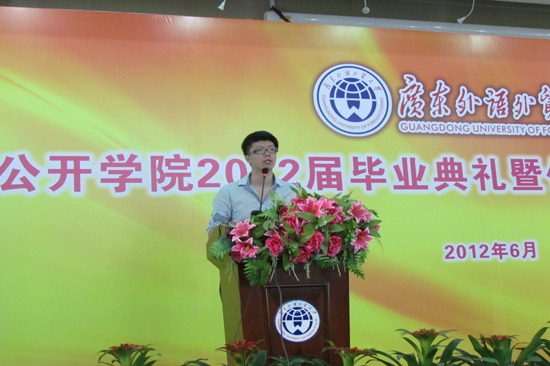 此次获奖的三名学生均是公开学院离校学生,得知获奖喜讯后,三名学生均从外地回到母校领奖。颁奖典礼上,刘瑜,刘斌艳、赖睿丰三位学生均以PPT的形式与参加典礼的人员分享了其学习心得及对公开学院的感激之情。这三位学生以坚持不懈的学习心路历程表明学习贵在坚持,作为学生必须建立明确的学习目标,才能通向成功之路。