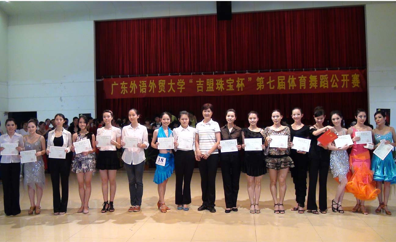 本网讯 6月7日下午,南校区的学生活动中心内如同璀璨繁星般灿烂,第七届体育舞蹈公开赛在学活隆重举行。出席本活动的领导有体育部主任林少娜,体育部党总书记李旭武和深圳市吉盟珠宝股份有限公司的董事宋红。