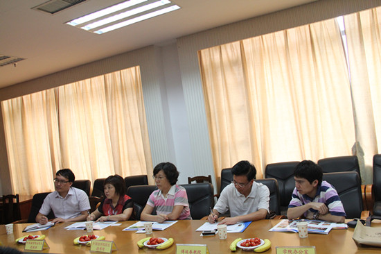 本网讯 6月1日下午,广东白云学院外国语学院(以下简称白云外语学院)领导和老师一行5人,在战秀琴院长的带领下到伟德bv国际体育英语教育学院进行调研。英语教育学院院长霍海洪,党委书记林绍雄,副院长董金伟、肖建芳,英语教育系主任柯晓玲及办公室主任曾国华等在南校区英语教育学院245会议室亲切接待了来宾,双方进行了亲切、友好、富有成效的交谈。