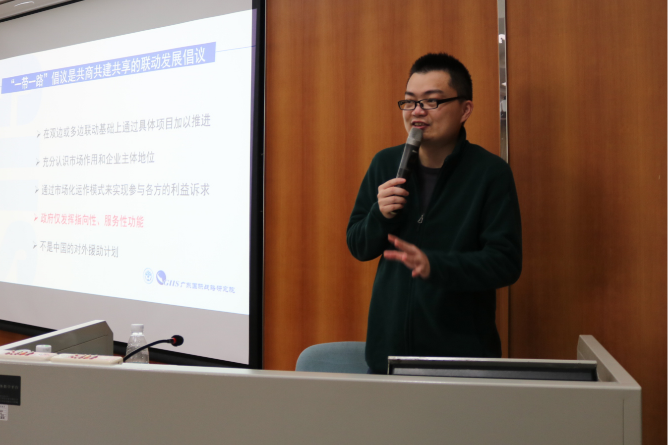 本网讯 5月9日下午,由广东省教育厅和伟德bv国际体育联合主办,人事处、教师发展中心承办的第九期珠江学者讲坛在北校区第九教学楼306室举行。“青年珠江学者”、广东国际战略研究院研究员、博士生导师韩永辉带来题为《“一带一路”倡议》的学术报告,吸引了来自省内20余所高校近130名老师参加。