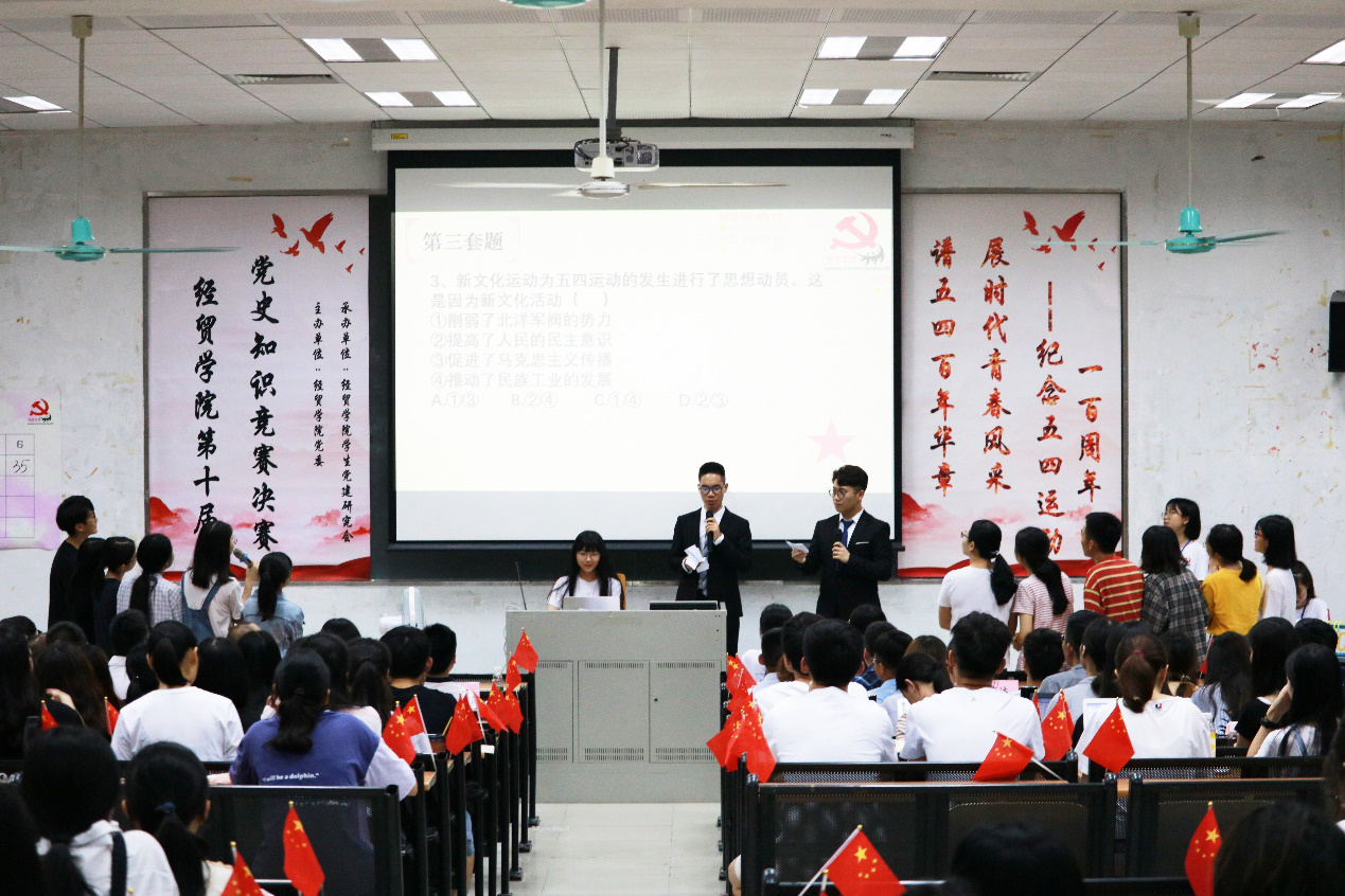 本网讯 4月28日晚,伟德bv国际体育经贸学院第十届党史知识竞赛决赛在南校区教学楼E204举行。本次党史知识竞赛以“谱五四百年华章,展时代青春风采”为主题,旨在让学生对五四运动及精神有更深入的了解,提高学生的理论素养,增强学生的爱国情怀。
