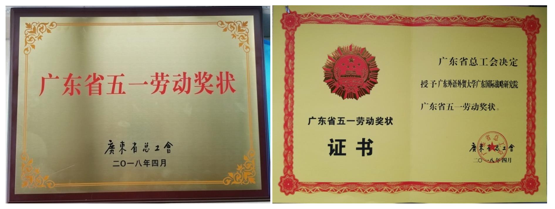 2018年,广东省总工会授予伟德bv国际体育广东国际战略研究院“广东省五一劳动奖状”。广东国际战略研究院是经广东省人民政府批准成立、以伟德bv国际体育,BETVICTOR官网的科研与教学资源为基础的新型高校智库。2017年,广东国际战略研究院在国家发改委大数据中心发布的“一带一路”智库影响力排名中,位列地方性智库第3位。2018年,广东国际战略研究院在美国宾夕法尼亚大学智库排行榜中,位列亚洲大国智库第87位。