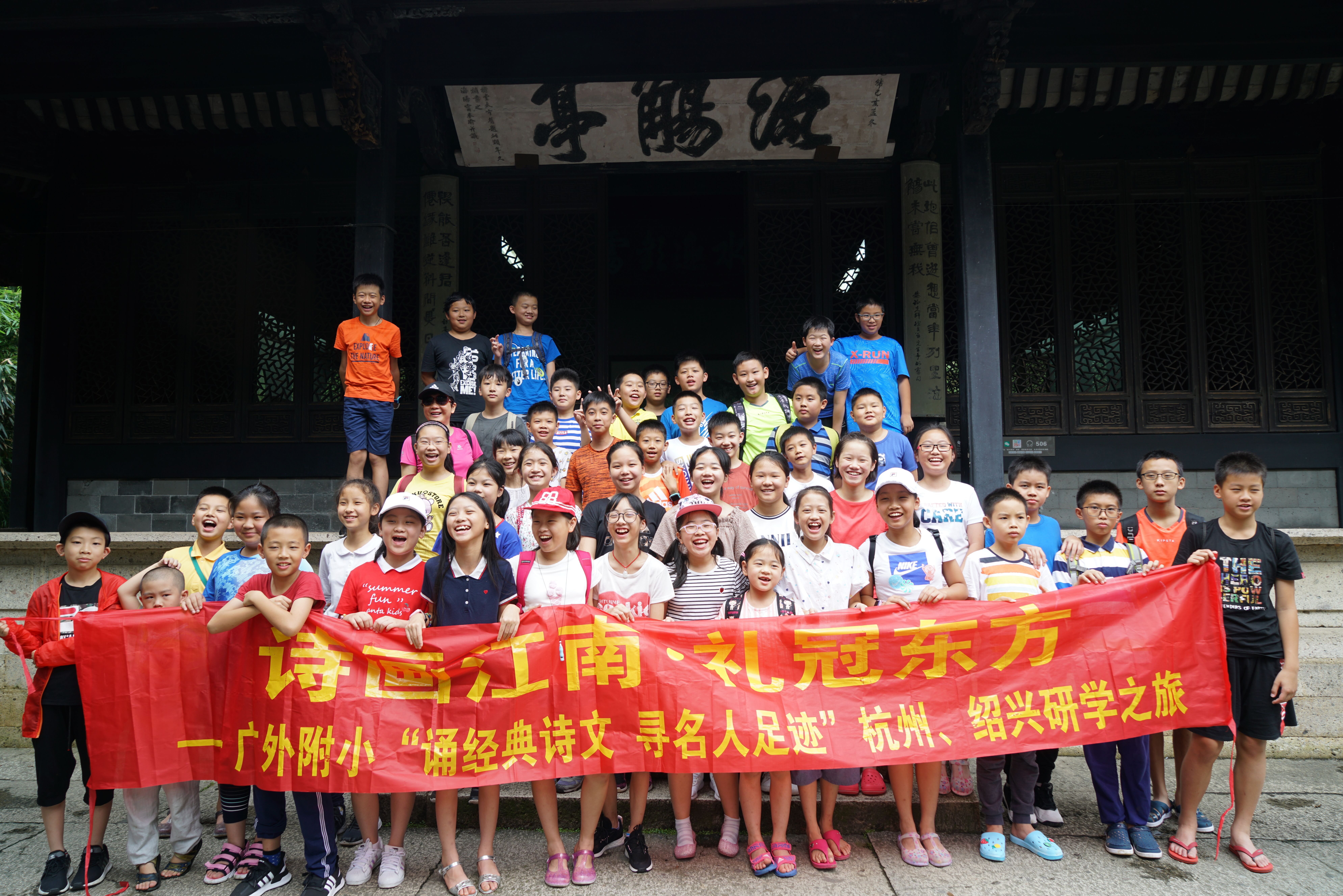 本网讯 “读万卷书,行万里路。”7月12日,广外附小“云溪诗意班”学生和家长“大手牵小手”,共赴浙江杭州、绍兴,开展为期四天的“诵经典诗文、寻名人足迹”研学活动。研学之旅短暂而丰富,同学们不仅饱览了祖国大好河山,领略了灿烂的中国传统文化,还开启了与古人跨越时空的交流与对话。