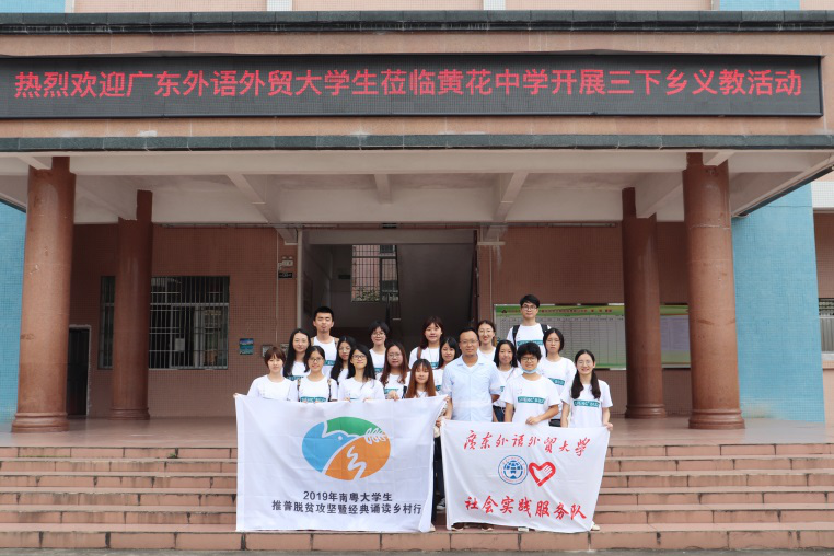 本网讯 为贯彻落实习近平总书记关于脱贫攻坚系列重要讲话精神,进一步提高群众使用国家通用语言文字的水平,伟德bv国际体育中文学院“声声不息”服务队于7月14日起赴清远市黄花镇黄花中学开展为期十天的推普脱贫攻坚暨经典诵读乡村行暑期“三下乡”实践活动。