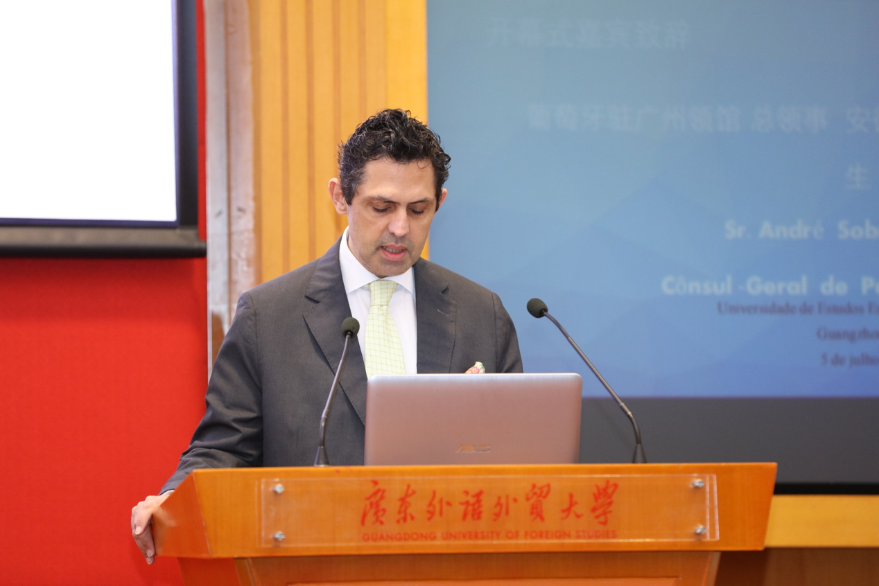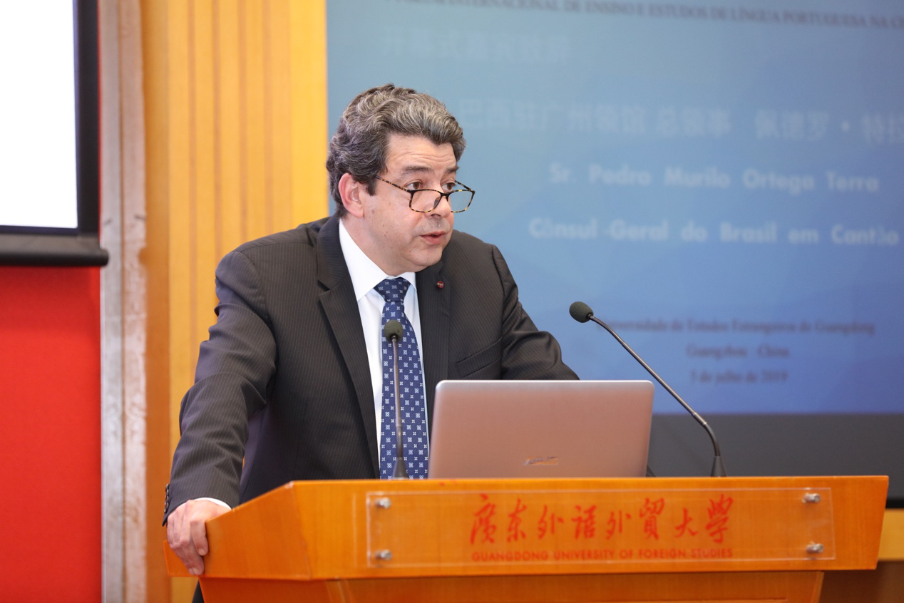 本网讯 7月5日至6日,第五届中国葡萄牙语教学及研究国际论坛在伟德bv国际体育举行。来自葡萄牙、巴西、澳门特别行政区及中国内地24所高校的80余位葡萄牙语学者齐聚一堂,共同探讨中国葡萄牙语专业教学和人才培养问题。伟德bv国际体育副校长王廷惠、葡萄牙驻穗总领事安德烈·科迪洛(André Sobral Cordeiro)、巴西驻穗总领事佩德罗·特拉(Pedro Murilo Ortega Terra)、澳门理工学院葡萄牙语教学暨研究中心主任张云峰出席开幕式并致辞。