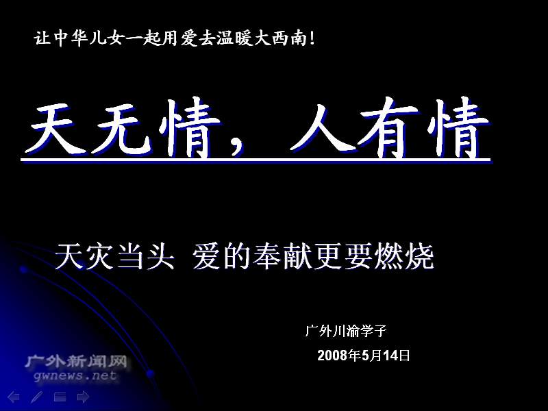 四川发生大地震了!听到这突如其来的噩耗,川渝学子都表示难以置信。在电视上看到那曾经熟悉的、引以为傲的家园顷刻之间变得满目疮痍,他们心中除了痛彻心扉,还是痛彻心扉。看到新闻上通报的遇难人数不断地上涨,电话拨了一通又一通始终没法与家人取得联系,焦虑无助的心情深深地刺痛着广外川渝学子的心。