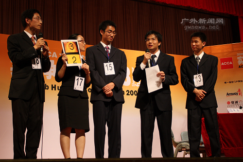 本网讯 5月24日下午,“2008ACCA大学生就业力大比拼实习争夺战”广东赛区决赛在广外大南校区学生活动中心举办。大赛邀请了安利人力资源总监饶俊、安永会计师事务所合伙人黄寅等12位重量级评委,广外大学生就业指导中心主任赵烨也出席了本次活动。