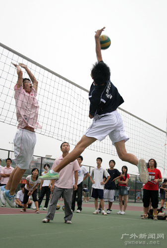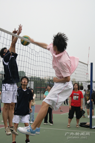 本网讯 5月18日下午,08年“新生杯”排球赛八强争夺战在南校区排球场正式打响,八强队伍捉对厮杀。最终,经贸学院、信息学院以及法学院分别以2:1的同样比分击败了东语学院、中文学院和管理学院,涉险过关。国际学院则以2:0轻取商英学院,成为四强中仅存的一支北校队伍。