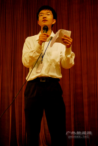 现就读研二的孙强畅谈了两年来他在伟德bv国际体育的学习和生活感受。本科毕业于南开大学的他表达了自己的广外情结。他幽默地指出,广外大是他善良的“后妈”,总在他陷入低潮时给予他力量,这诙谐生动的比喻让气氛变得十分活跃。