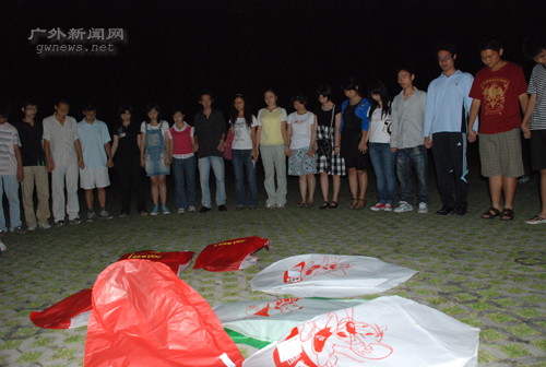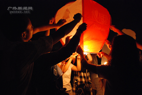 本网讯 5月13日晚,伟德bv国际体育二饭门前的马路上气氛低沉,一群学生聚集在此。他们神色哀伤,说着四川方言,讨论着家乡的灾情。他们是广外的川渝学子,当晚自行组织放孔明灯为家乡祈福。