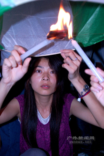 记者注意到,这些坚强的川渝学子们表情沉痛但没有流泪,传自家乡的噩耗没有把他们打倒。他们坚强地团结在一起,尽自己的努力为家乡做一些事情。他们手持蜡烛,传递着火种,点燃了孔明灯。
