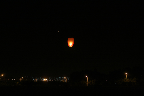 夜空中高高升起的孔明灯 寄托着深深的祝福