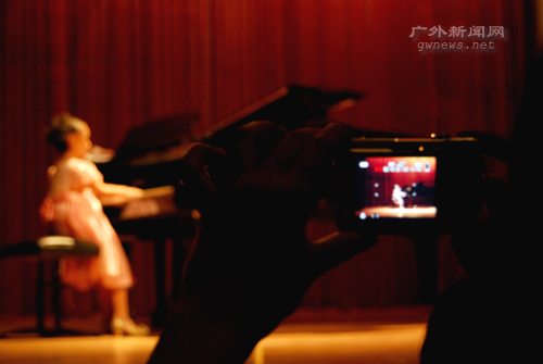 家长纷纷举起相机和DV记录下孩子登台演奏的过程