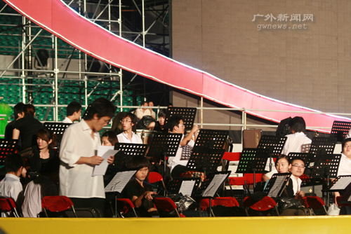 当日,参与彩排的同学、演员、场地布置人员、指挥者以及媒体工作人员都尽职尽责地工作着,一切准备工作都有序进行。排练历经近九个小时,圆满完成。