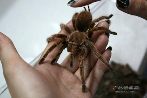 “饲养蜘蛛很有个性啊,虽然这蜘蛛样子有点吓人,但性情十分温顺!”一说起她的毛绒绒的智利玫瑰蜘蛛,07级的刘同学兴奋不已。