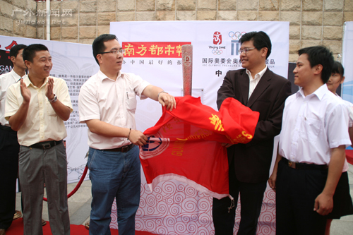 到场嘉宾有国际奥委会百年奥运珍藏品中国巡展组委会副秘书长刘巍,《南方都市报》广州发行部总经理郑胜利,伟德bv国际体育团委副书记何越晖以及校学生会代表欧少彬等。同学们踊跃参与,当四位嘉宾携手为大家掀开祥云火炬的神秘面纱时,现场气氛更是达到高潮。