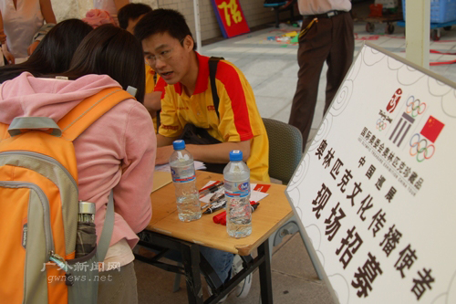 本网讯 4月23日中午,由国际奥林匹克珍藏品巡展组委会、广东省学生联合会和南方报业传媒集团联合主办的“‘祝福奥运’广东大学生迎接北京奥运暨国际奥委会奥林匹克珍藏品中国巡展”宣传活动于广外南校区隧道口广场隆重举行。目的在于宣传国际奥委会百年奥运展(广州站时间:4月30日至5月7日),同时也让大学生更好地了解奥运文化,弘扬奥运精神。